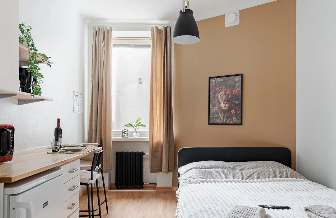 Den 20 m² stora lägenheten ligger i distriktet Kampen, bara 600 meter från Tempelplatsens kyrka. Inom några kvarter från den här lägenheten kan du besöka Finlandia-huset. Helsingfors Olympiastadion ligger också cirka 25 minuter bort till fots.